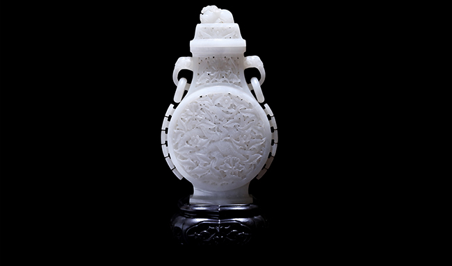 《鏤空雙耳壺》 和田白玉 27cm×14cm×9cm